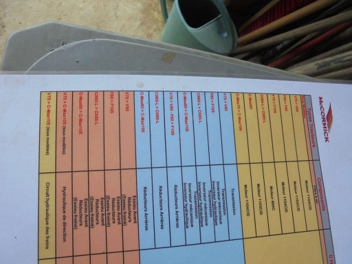tableau vidange MAC CORMICK avec quantitées